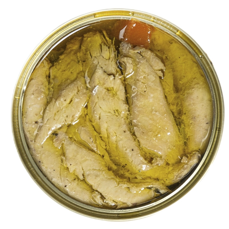 Caballa (Scomber scombrus), aceite de oliva virgen extra arbequina, vinagre de vino, vino blanco, cebolla, zanahoria, ajo, laurel, pimienta negra, tomillo, sal de manantial (PESCADO).