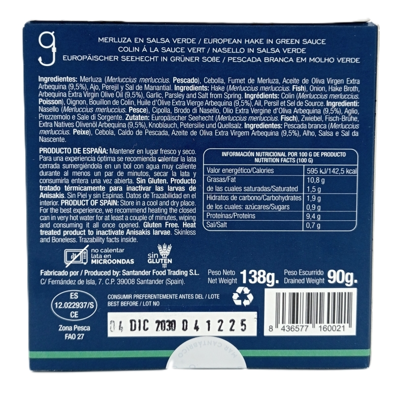 La Merluza en Salsa Verde Conservas Alalunga es una reinterpretación gourmet de una de las recetas más emblemáticas del norte de España. Elaborada artesanalmente con merluza del Cantábrico y una delicada salsa verde, este producto respeta la esencia de la cocina tradicional.