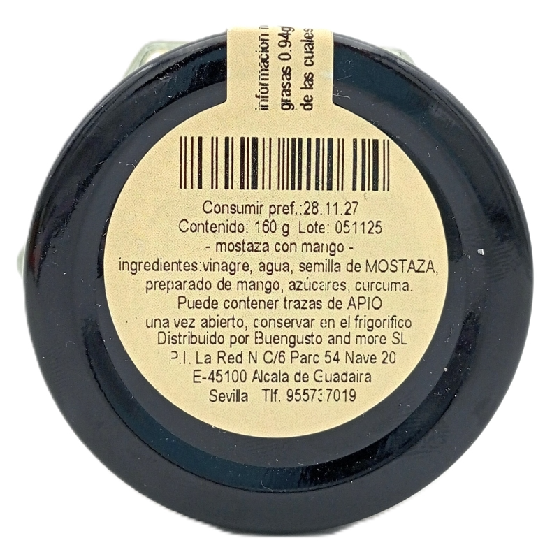 Mango, mostaza (MOSTAZA), vinagre, azúcar, agua, sal, especias.
