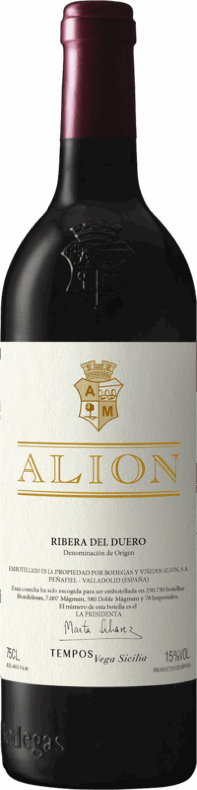 Alión es la expresión de la diversidad de la Ribera del Duero. Viñedos desde las zonas limítrofes al este de la denominación (Soria) hasta el extremo oeste (finca Vega Sicilia en Valbuena de Duero) conforman este vino, un mosaico de personalidades. Durante la crianza, en cemento, barricas y fudres, se ensamblan los distintos parajes hasta definir su armonía ribereña.